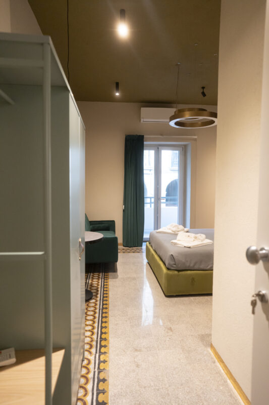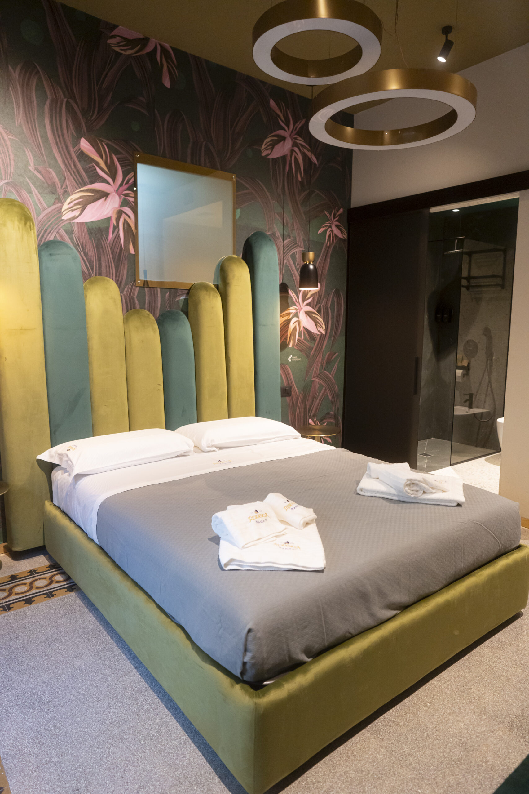 Ispirata alla freschezza del fiore Callisia, questa stanza è un rifugio di tranquillità e serenità. Arredata con eleganza, combina toni di verde che richiamano la natura, creando un’atmosfera rilassante e rigenerante. Gli arredi moderni e i dettagli curati fanno di Callisia la scelta ideale per chi cerca un angolo di pace dove potersi rigenerare, senza rinunciare ai comfort di una struttura di alto livello. Tra i servizi offerti ci sono un letto matrimoniale confortevole, aria condizionata, e un bagno privato ben attrezzato.