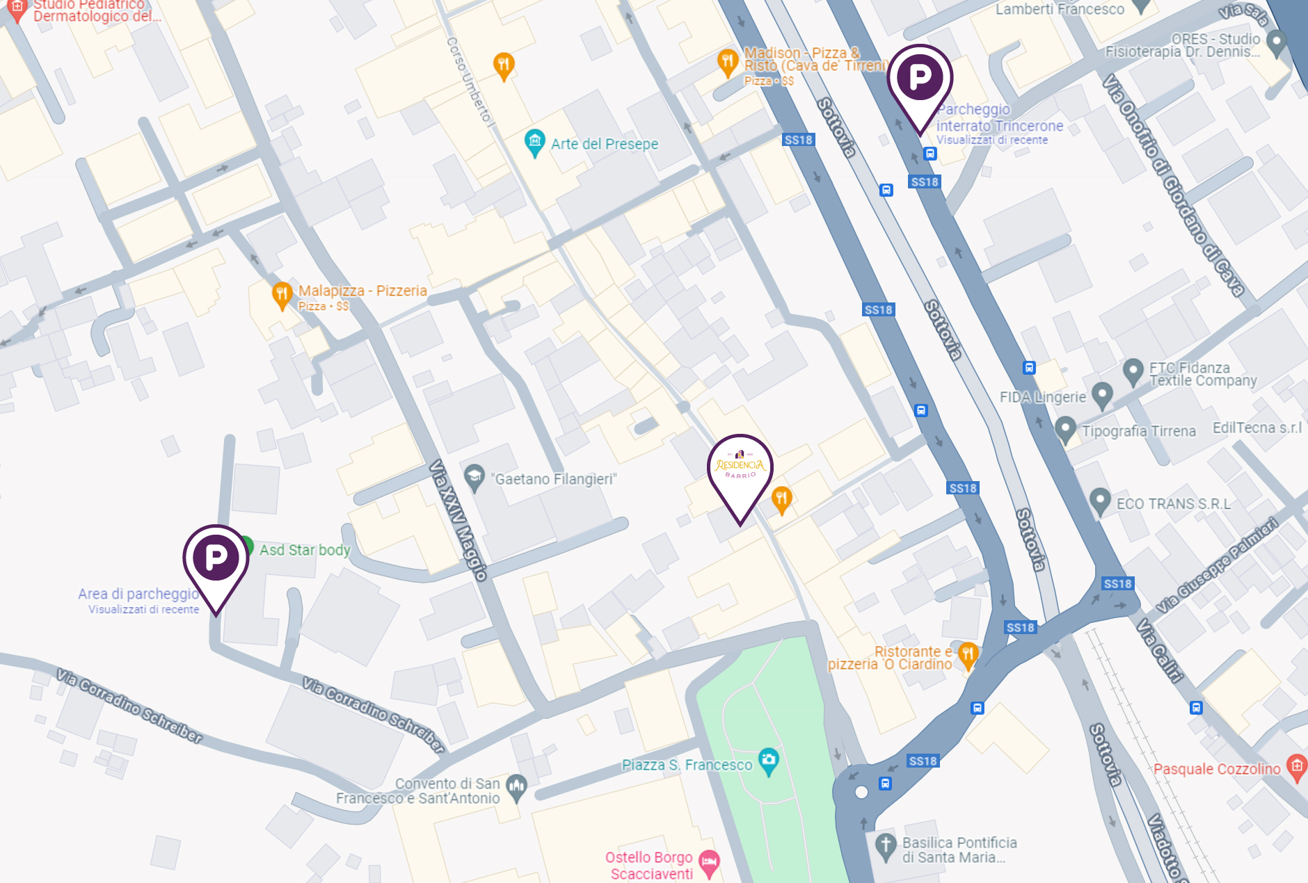 La Residencia Barrio è facilmente raggiungibile grazie alla sua posizione strategica nel cuore di Cava de’ Tirreni. Ecco le indicazioni per arrivare da diverse principali vie di trasporto:
